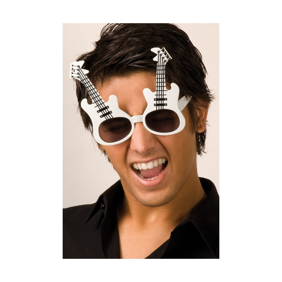 Votre passion pour la guitare sera dévoilée à travers cette paire de lunettes guitares. Elle est formée par une monture en forme de guitares de couleur noire et blanche, ainsi que par des verres en plastique teintés. L'accessoire est particulièrement conseillé pour la fête de la musique, vous conférant une allure de rockeur en tout point !