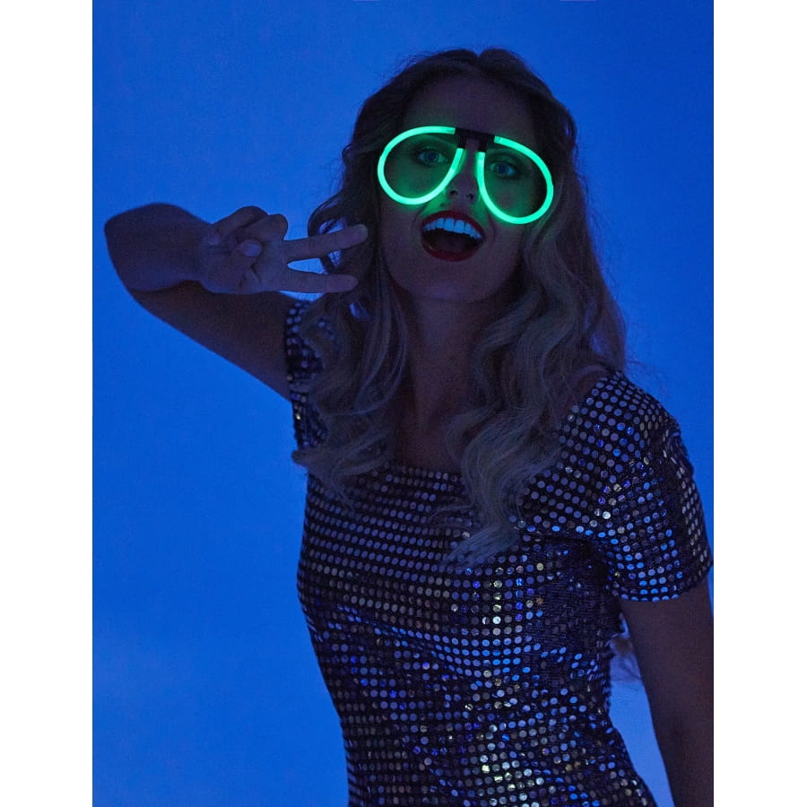 Soyez créatif et amusant à l'occasion d'une soirée à déguisée ou d'une fête sous le thème disco. Pour ce faire, fabriquez votre propre paire de lunettes phosphorescentes. En effet, ce lot vous permet de concevoir une paire de lunettes grâce aux deux bâtonnets de 20cm qui le compose. Il vous suffit de les fixer ensemble grâce au connecteur à quatre entrées et d'y accrocher les deux tiges de lunettes. Cet accessoire s'illumine pendant plusieurs heures.