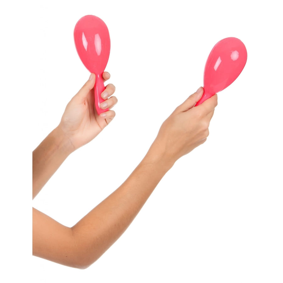 Choisissez un instrument de percussion pour compléter votre déguisement à la fête de la musique. Cette paire de maracas roses vous introduira dans l'univers de la culture latino. Il s'agit de deux maracas en plastique, de couleur rose fluo. Ils contiennent des petits grains leur permettant d'émettre un son quand on les agite.