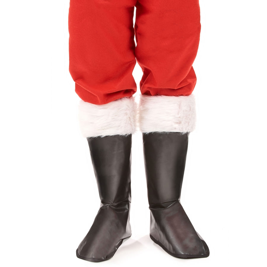 Père Noël ne peut pas faire la distribution des cadeaux sans avoir enfilé ses chaussures spéciales hiver. Vous aussi, munissez-vous d'une paire de sur-bottes de Père Noël en simili cuir pour compléter votre déguisement. Le modèle proposé a été conçu dans une matière imitation cuir de couleur noire, agrémenté de fourrure blanche sur le dessus.