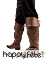 L'univers des pirates est impitoyable et pour l'intégrer, il faut s'habiller en conséquence. Préparez-vous à un rendez-vous avec l'aventure à travers cette paire de sur-bottes marrons unies. Chacune d'elles a été conçue en tissu épais marron imitation cuir, faisant 42 cm de dimension pour le haut et 48 cm pour le milieu. Elles sont équipées de laçages à l'arrière.