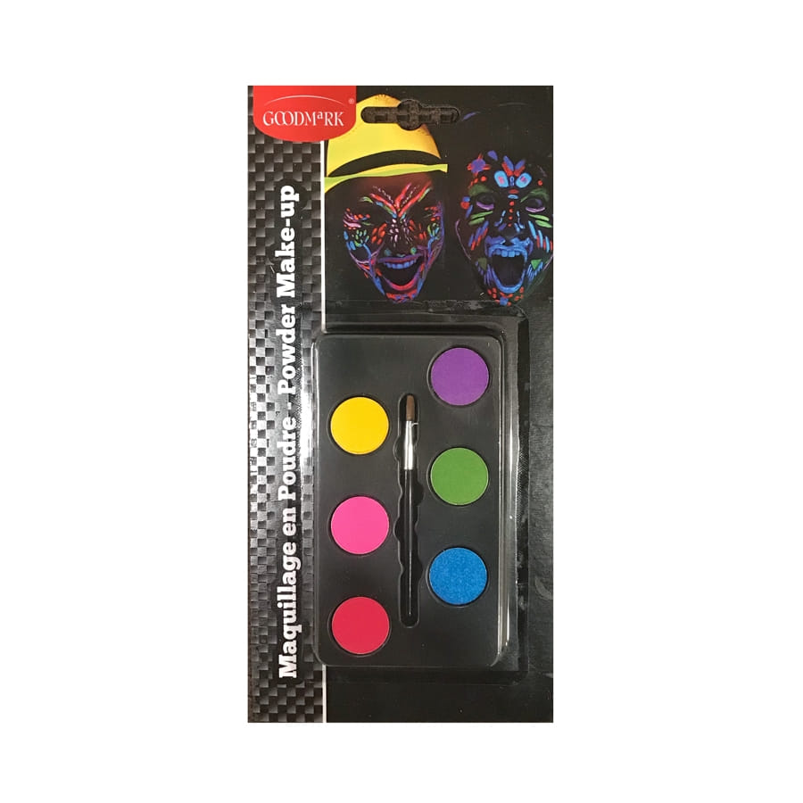 Palette de maquillage 6 couleurs UV, idéale pour se maquiller en vue d'un carnaval, d'un bal populaire ou d'une soirée déguisée.