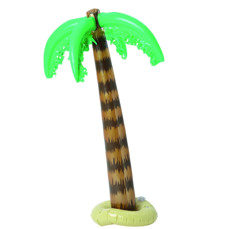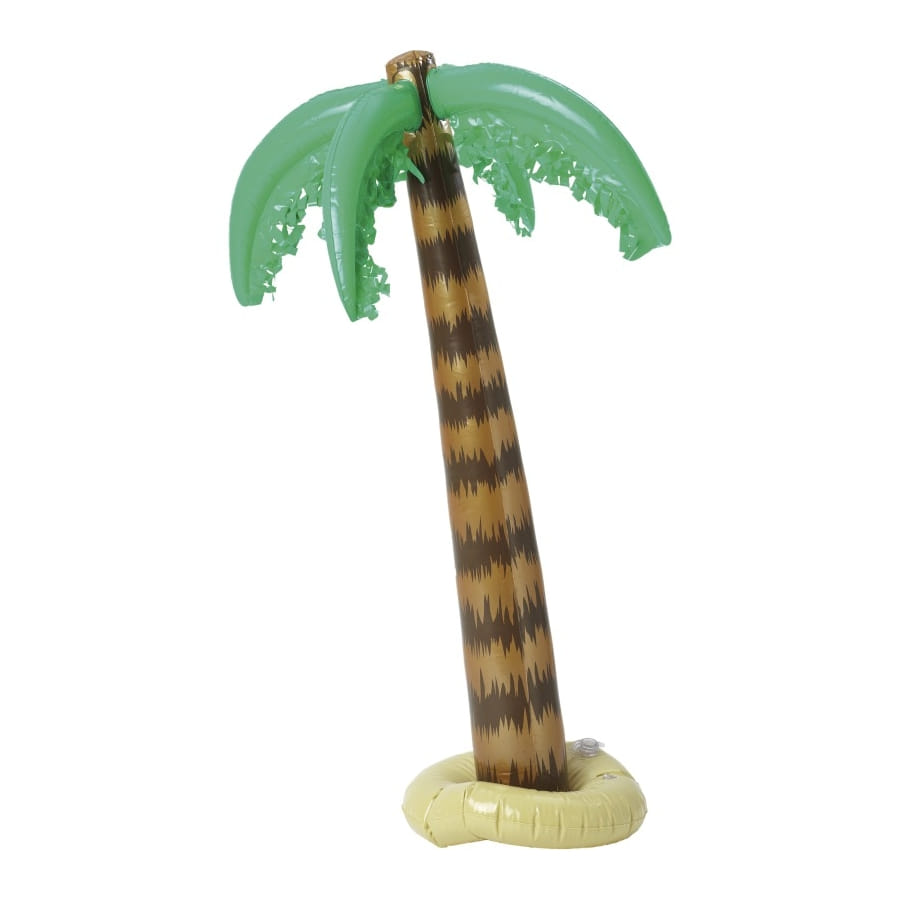 Palmier gonflable de couleur beige, marron et verte. Cet accessoire mesure 92 centimètres de long. Il ira très bien à une décoration tropicale aux couleurs vives.