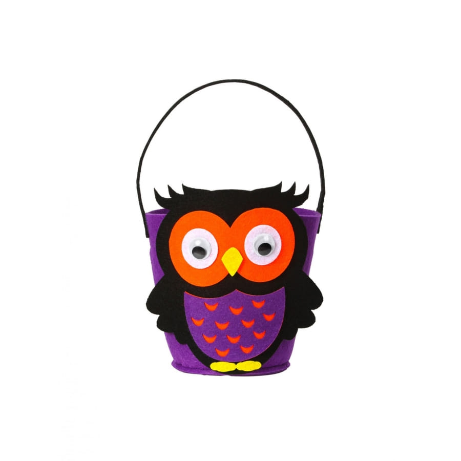 Laissez-moi vous présenter la crème de la crème des sacs à bonbons: le Panier Bonbons Halloween Hibou Violet et Noir. Pas simplement un panier, mais une véritable oeuvre d'art! Façon feutre, ce panier violet se distingue par sa belle anse noire, aussi robuste que le courage de vos petits monstres prêts à affronter la nuit.