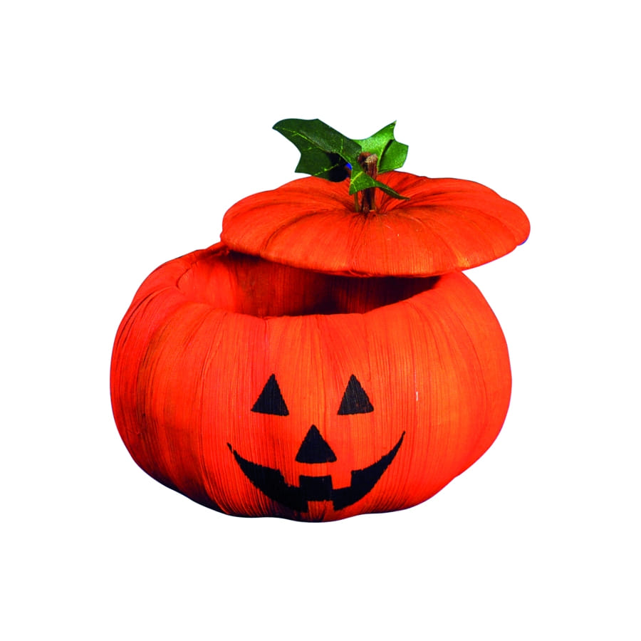 Panier en forme de citrouille de couleur noire et orange avec couvercle amovible. Cet accessoire mesure 17 centimètres. Vous pourrez y placer vos bonbons pour Halloween et laisser les enfants y trouver leur bonheur!