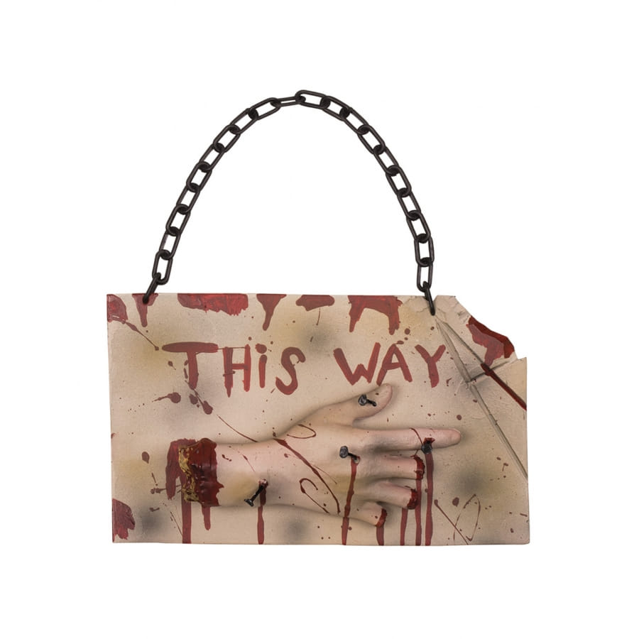 La pancarte de direction this way ensanglanté de 19 x 31 cm est un accessoire décoratif.