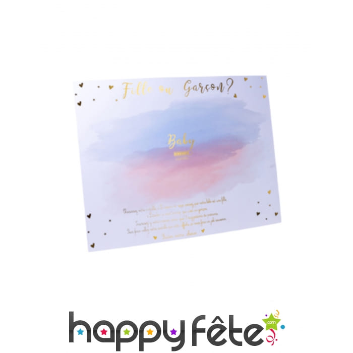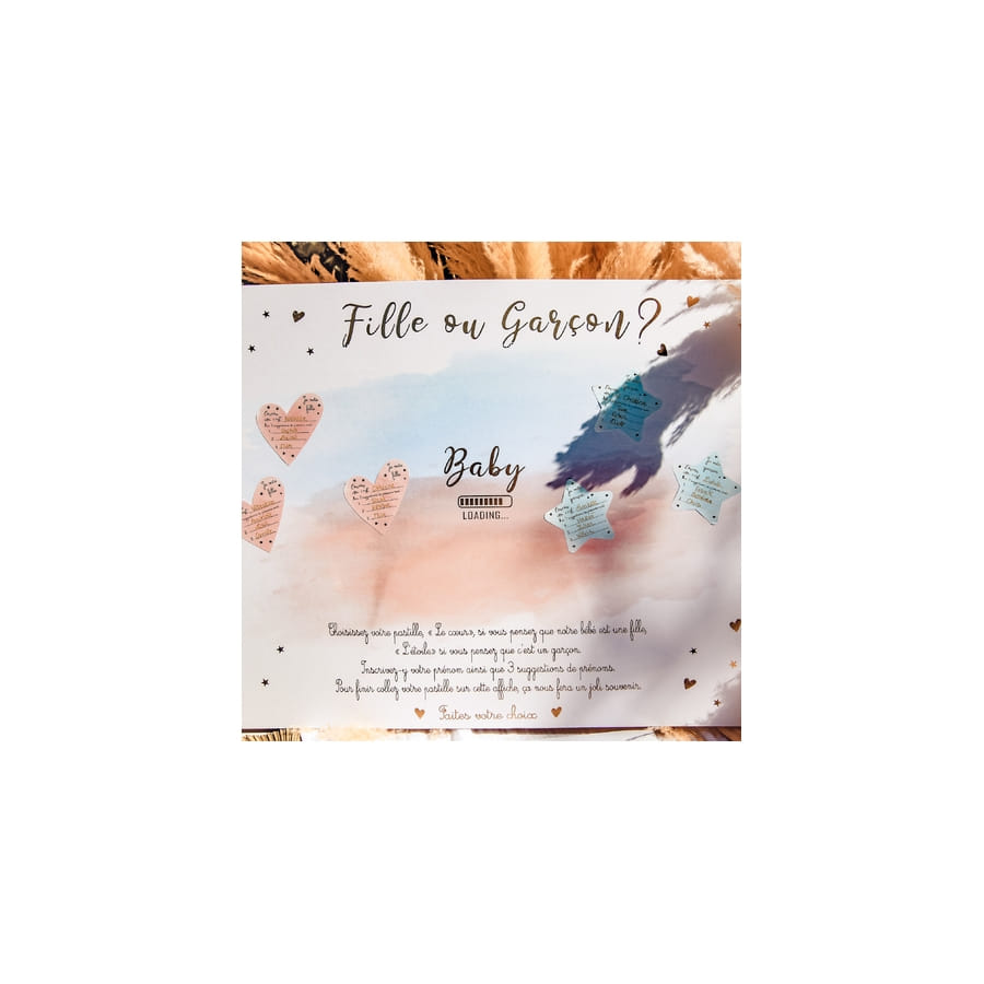 Ce panneau est un décoration ludique permettant à vos invités de tenter de deviner le sexe de bébé.