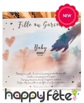Le panneau de 56 x 43 cm et comporte les inscriptions dorées "Fille ou Garçon ?", ainsi que le mot "Baby" au centre.