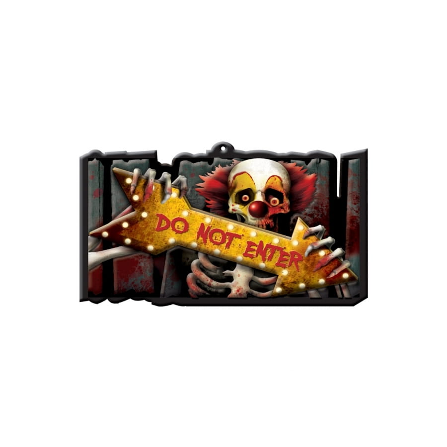 Le panneau Halloween Do Not Enter clown squelette est une décoration murale de 44 x 25 cm.