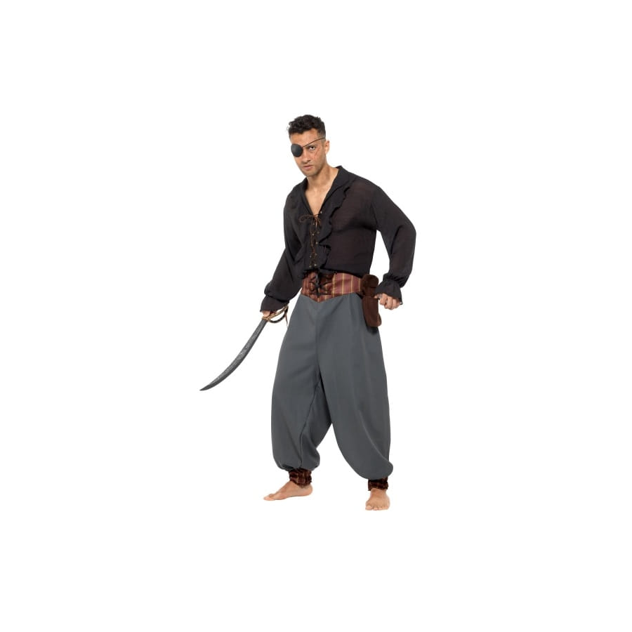 Messieurs, partez à l'abordage avec ce pantalon bouffant noir de pirate pour homme. Fait d'un tissu léger, extrêmement confortable, il est large au niveau des jambes et des cuisses, puis se resserre au niveau des chevilles pour un parfait maintien.