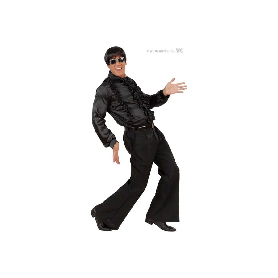 Un pantalon extensible noir. Cet accessoire est disponible en taille M/l ou. Il est parfait pour se déguiser en danseur pour la fête de la musique.