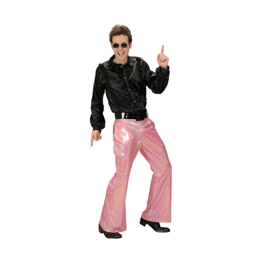 Déhanchez-vous aisément dans vos soirées disco en arborant ce pantalon rose holographique disco pour homme.