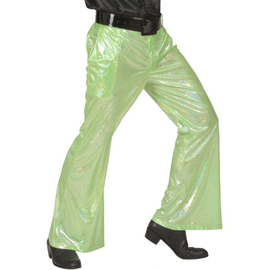 En complément de votre costume disco, voici le pantalon vert holographique pour homme.