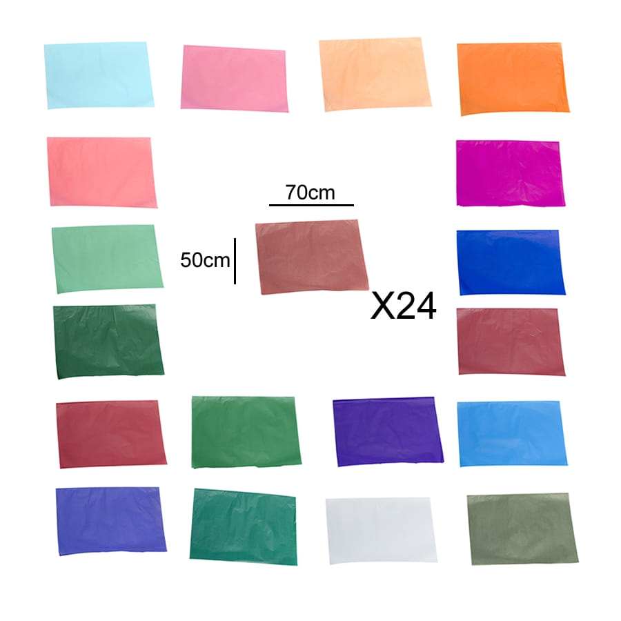 Venez découvrir ce splendide papier de soie, un article conçu pour des usages aussi divers que les arts décoratifs, l'emballage ou la bibliophilie ! Ce produit mesure 50 x 70 cm, proposé en plusieurs coloris : jaune citron /vert d'eau / rose bonbon/ turquoise/ bleu ciel/ bordeaux/ bleu marine/ vert prairie/ vert olive/ bleu moyen /vert bouteille. Il est vendu par paquet de 24 belles feuilles de fine texture.
