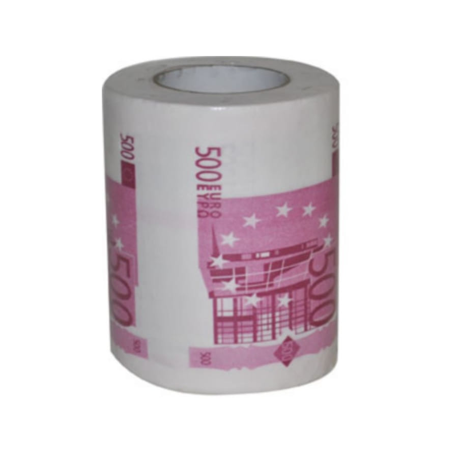 Le rouleau de papier toilette blanc imprimé de billet de 500 euros est une décoration humoristique.
