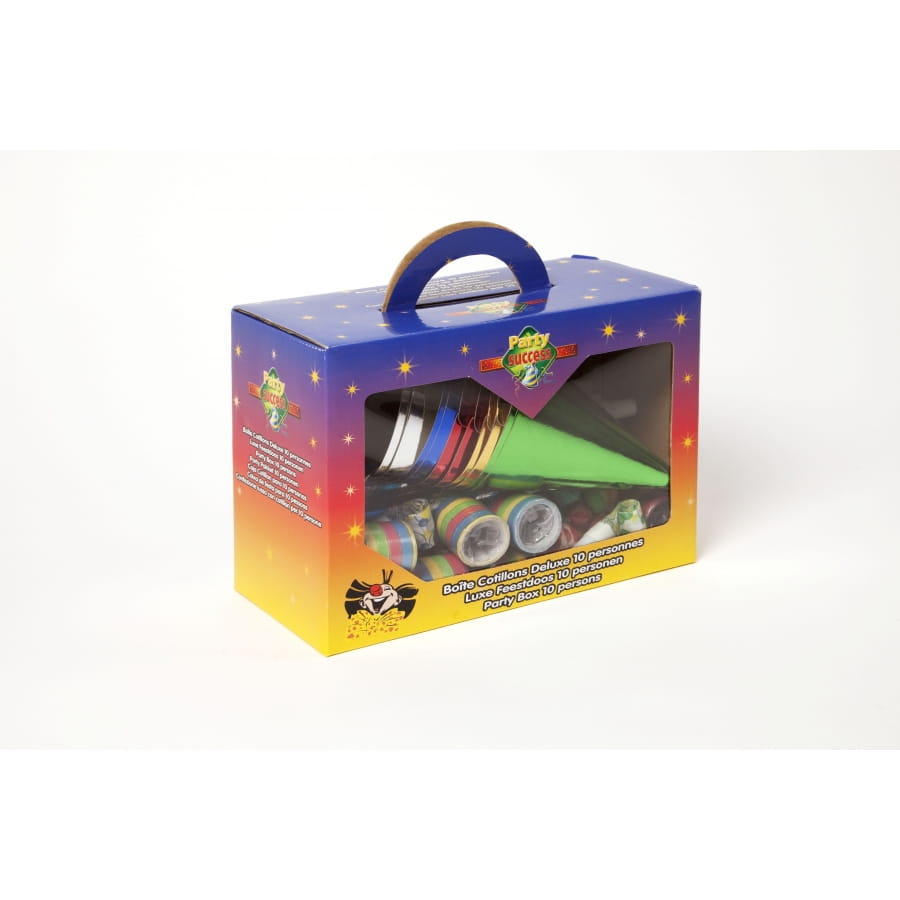 Pour une fête toute en couleurs, utilisez les accessoires appropriés ! Une bonne dose de folie et de fantaisie dans le programme? Optez pour cette exceptionnelle boîte à vitrine "party box". Elle est idéale pour 10 personnes. Elle contient tous les éléments qui vont vous aider à organiser une fête réussie : serpentins et confettis. Cette boîte aura pensé à tout !