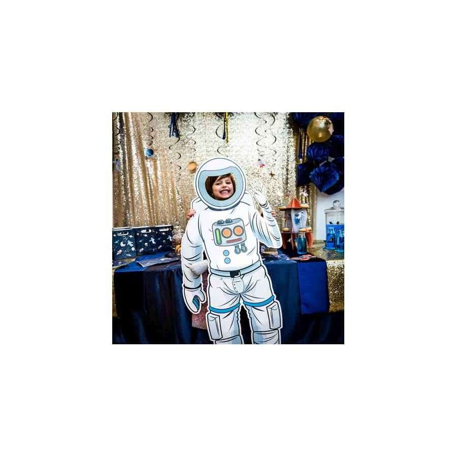 Le passe-tête astronaute pour enfant de 130 x 70 cm est en un cadre photobooth en carton.