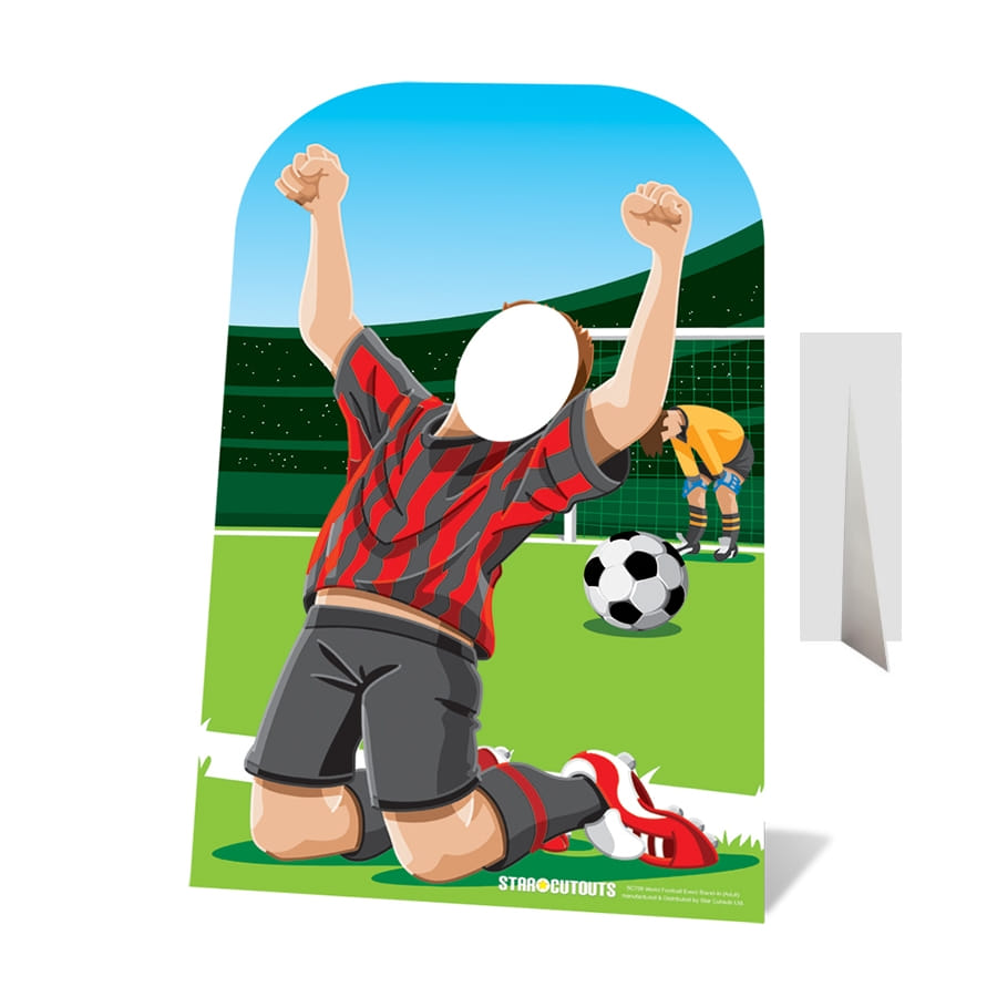 Ce Passe tête attaquant de football, taille enfant est un article conçu dans le but d'amuser les enfants lors d'une fête d'anniversaire sur le thème Football. Fabriquée en carton d'une dimension de 117 x 74 cm, cette figurine multicolore représente un attaquant avec un trou au niveau du visage, permettant aux enfants d'y passer leur tête.