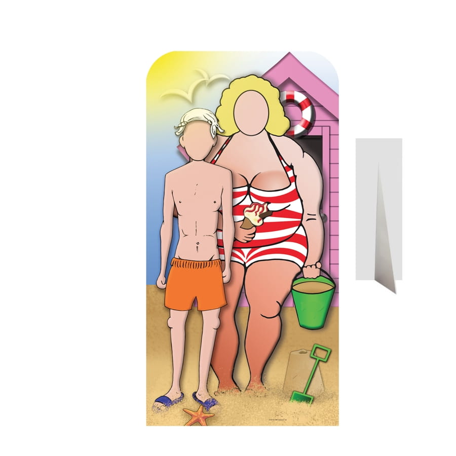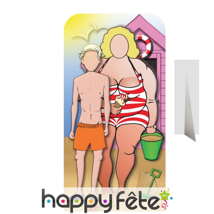 Voici une silhouette géante en carton, représentant un couple en maillot de bain, terriblement rigolo : une très grosse femme et un petit homme très mince, à la plage. Cette figurine mesure 186 cm de hauteur (taille adulte), avec une découpe pour passer le visage et prendre de superbes photos. Parfait pour une décoration de salle lors d'une soirée Humour entre amis comme toute autre occasion. Fous rires garantis !