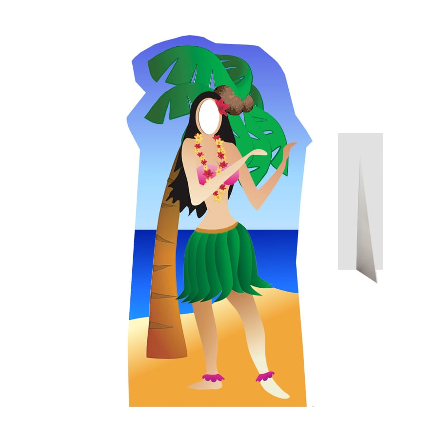 Ce passe-tête que vous voyez ici représente une danseuse hawaïenne grandeur nature, en train de pratiquer le Hula. Pour ceux qui sont un peu perdu, le Hula, c'est un type de danse accompagné de chant, très répandu dans les îles hawaïennes. Cette silhouette décorative est en carton, mesurant 190 cm (taille réelle d'un adulte). Ce n'est pas tout, celle-ci possède une découpe pour passer le visage et prendre des photos. Tout le monde pourra ainsi se déguiser en une belle danseuse hawaïenne et prendre de magnifiques photos lors de la prochaine soirée Exotique.