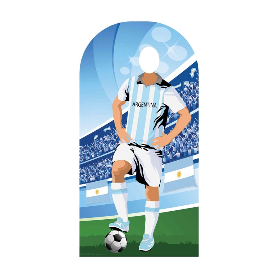 Le passe-tête représente un joueur de foot portant le maillot de l'équipe nationale d'Argentine.