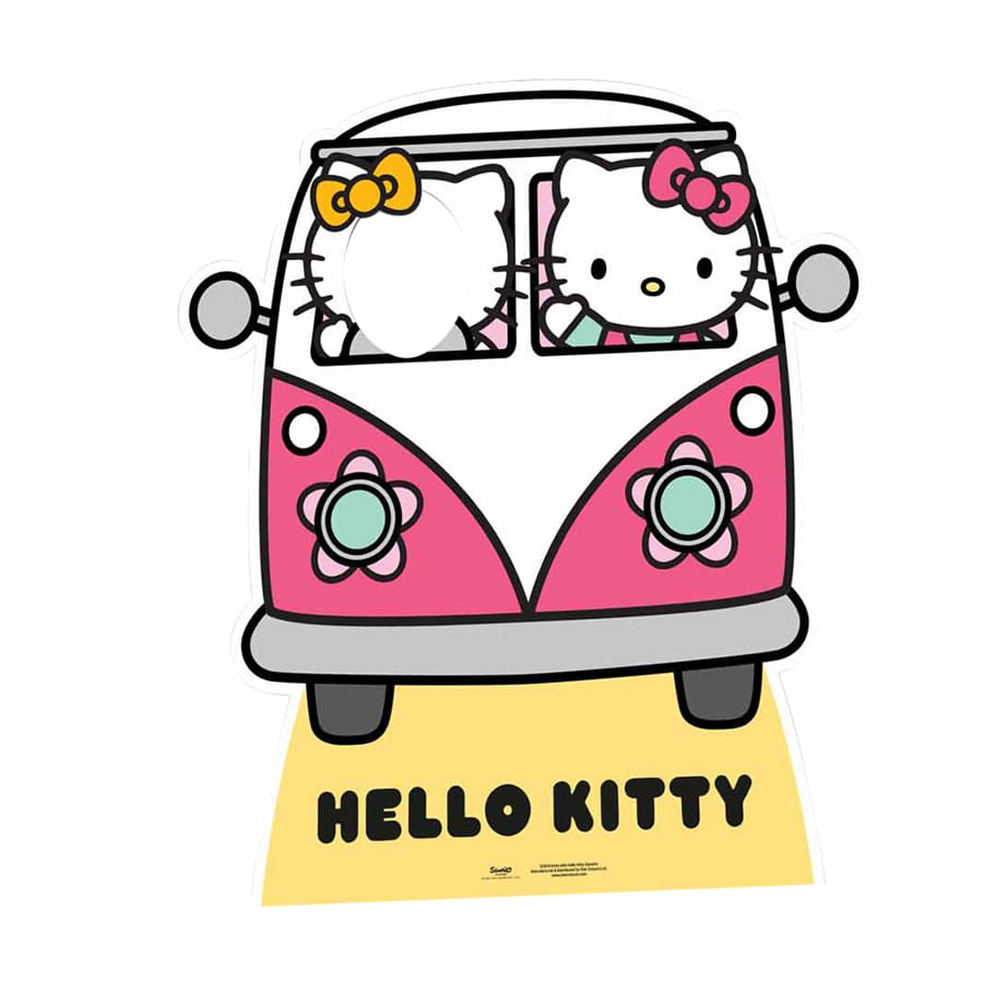 Une photo près de la petite Kitty? C'est désormais possible avec ce passe tête Hello Kitty pour enfant. La figurine géante est imprimée d'une petite fourgonnette rose et blanche conduite par Kitty, avec un passe-tête à côté, où votre enfant pourra s'installer. De 110 x 96 cm, cet objet décoratif est sous licence Hello Kitty.