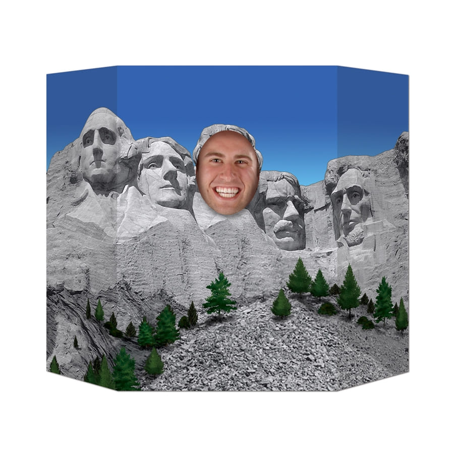 Faites-vous passer pour le cinquième président des États-Unis et passez votre tête à côté de ceux des fameux anciens présidents américains grâce à l'article Passe tête Mont Rushmore. Cet article d'une dimension de 60 x 90 cm est fait en carton légèrement replié sur les côtés pour le maintenir sur une table par exemple, avec un trou au milieu pour y passer la tête.