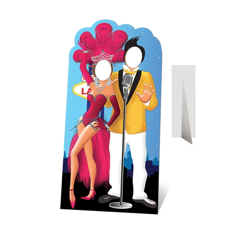 Vous n'avez pas besoin d'aller à Las Vegas pour avoir une photo de vous là-bas. Ce passe-têtes de couple à Las Vegas vous le prouve. Il vous suffira de passer la tête au niveau des découpes et de prendre la photo. Les multiples couleurs de Las Vegas et des tenues du couple ornent ce passe-tête en carton, qui a 195 cm de haut et 95 cm de large.