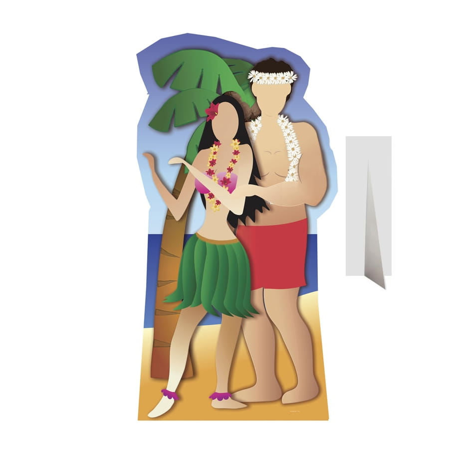 Voici un passe têtes de couple Hawaïen, en carton, de taille adulte, mesurant 1.90 m. Elle représente un couple hawaïen sur une plage, avec des découpes pour passer les visages et prendre des photos. Ce sera un article idéal pour une décoration à l'occasion d'une soirée à thème Exotique ou Hawaï. Grâce à ce passe tête, tous vos convives pourront s'amuser à prendre de superbes photos tout en entrant dans la peau d'un(e) vrai Hawaïen(ne).