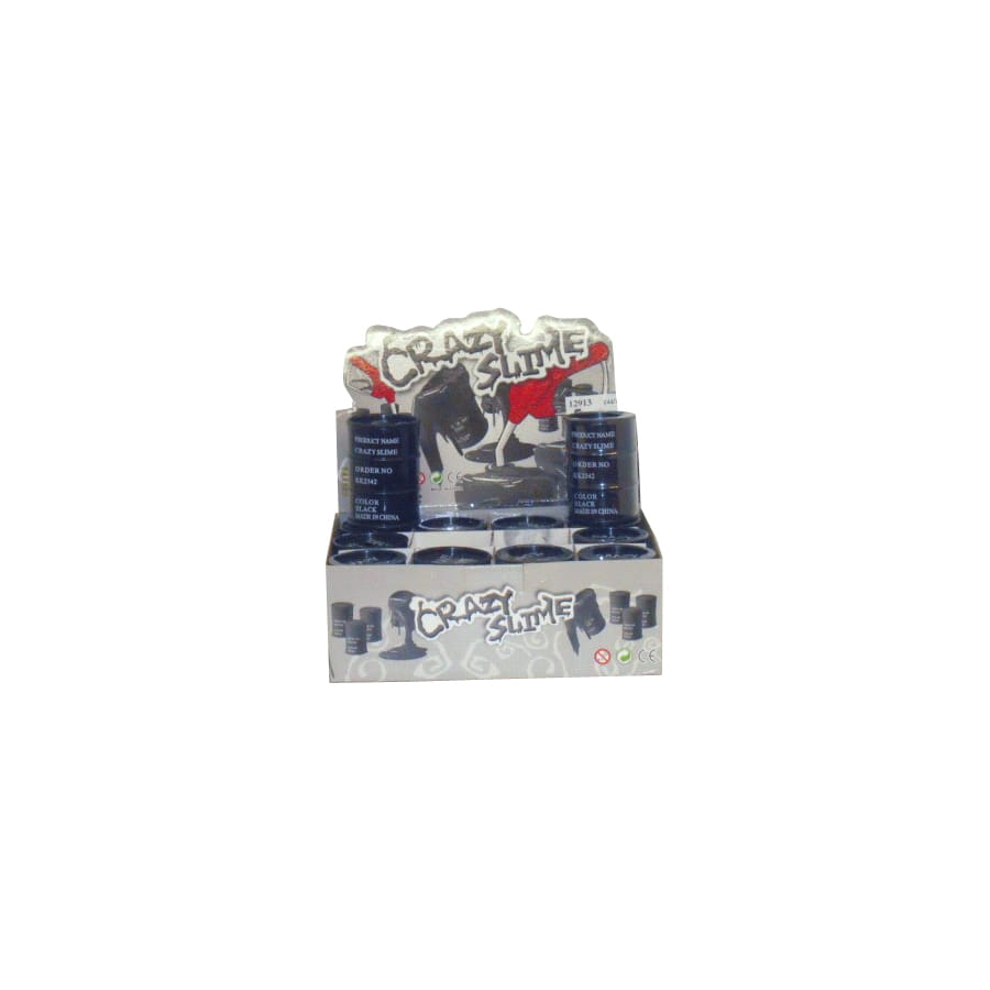 Pâte en matière gluante "Crazy Slime" en pot style baril de pétrole. Chaque pot mesure 7.5 centimètres. Accessoire de farce et attrape.