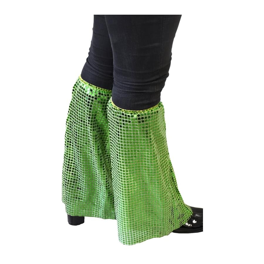 Les années disco reviennent en force avec cette paire de pattes d'éléphant ! Simples à utiliser, elles se fixent à votre pantalon grâce à un élastique. Celles-ci sont de couleur verte avec un léger effet pailleté. Elles sont parfaites pour une soirée Seventies ou pour faire revivre le disco lors d'un carnaval. Mesdames, vous êtes bien parties pour vous déhancher sur la piste de danse !