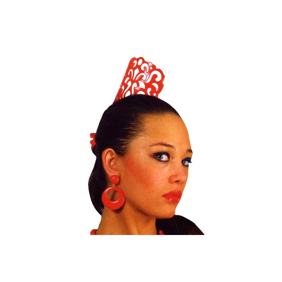 Peigne d'origine andalouse à mettre directement dans les cheveux. Cet accessoire pour femme est de couleur rouge. Vous pourrez vous en servir pour compléter une tenue d'origine espagnole pour un carnaval.