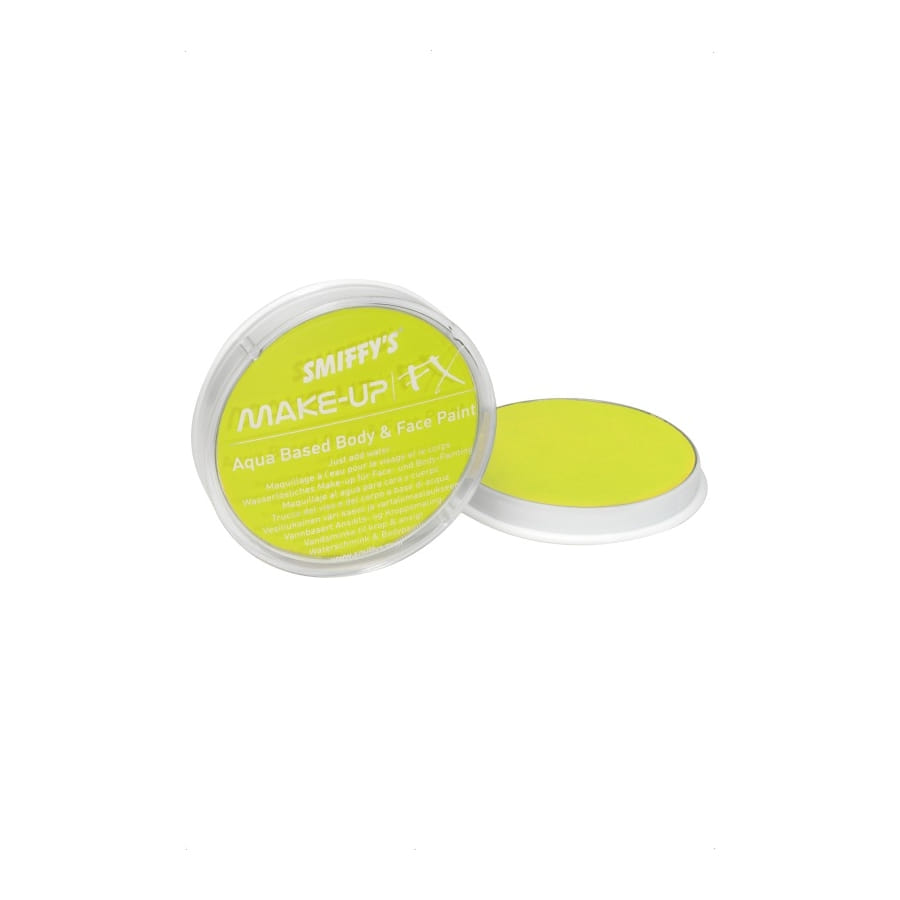 Pot de maquillage à l'eau, de la marque Smiffy's, de couleur jaune, pour le visage et pour le corps. Ajoutez des couleurs vives à votre maquillage en appliquant cette couleur.