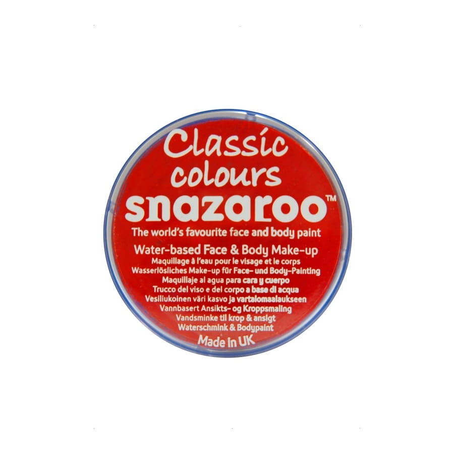 Peinture à l'eau pour visage et corps de couleur rouge vif. Le pot contient 18 millilitres de maquillage pour adultes ou enfants. Il vous aidera particulièrement pour un maquillage de clown ou d'horreur.