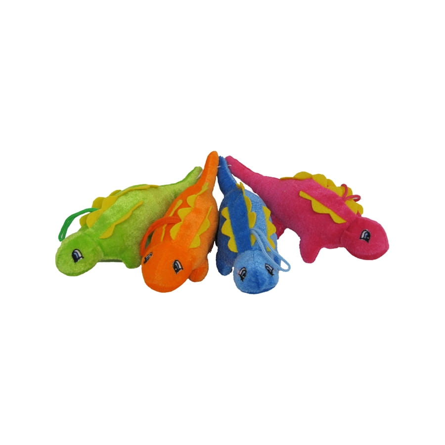 Pour faire connaître à vos enfants ces magnifiques animaux de la préhistoire, comme le plus célèbre d'entre eux, le dinosaure, offrez-leur ce dinosaures en peluche. Ils est disponibles en 4 jolies couleurs assorties avec des écailles en jaune : vert, orange, bleu et rose. Un peu singulières comme couleurs pour un dinosaure, mais tellement mignons ! Ils ont une longueur de 18 cm. Lors de la commande, vous n'aurez pas le choix de la couleur et recevez l'un des dinosaure. Pour en recevoir plusieurs différents, ajoutez en plusieurs à votre panier.