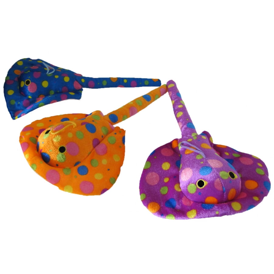 Adoptez ce fascinant animal marin ! Découvrez une fabuleuse peluche en forme de raie qui va sûrement plaire aux petits enfants. Elle fait 24 x 36 cm de dimension, et est décorée de multiples couleurs pour un maximum de fantaisie. Divers coloris existent mais vous n'aurez pas le choix de la couleur à la commande car cela dépend de l'arrivage.