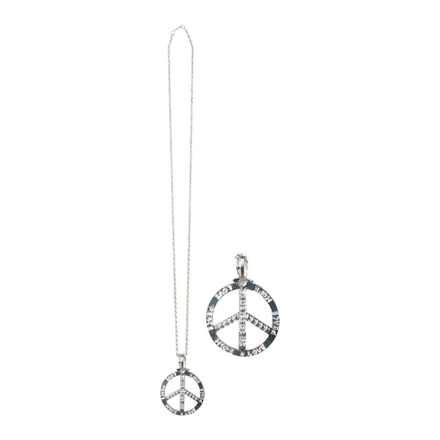 Un pendentif Peace and Love, entièrement en métal couleur argent pour homme, femme ou adolescents. Le choix du modèle et de la couleur n'est pas permis lors de la commande. Ce set est idéal pour les carnavals ou les anniversaires. Elle ira à merveille avec votre tenue hippie pour d'une soirée années sixties.