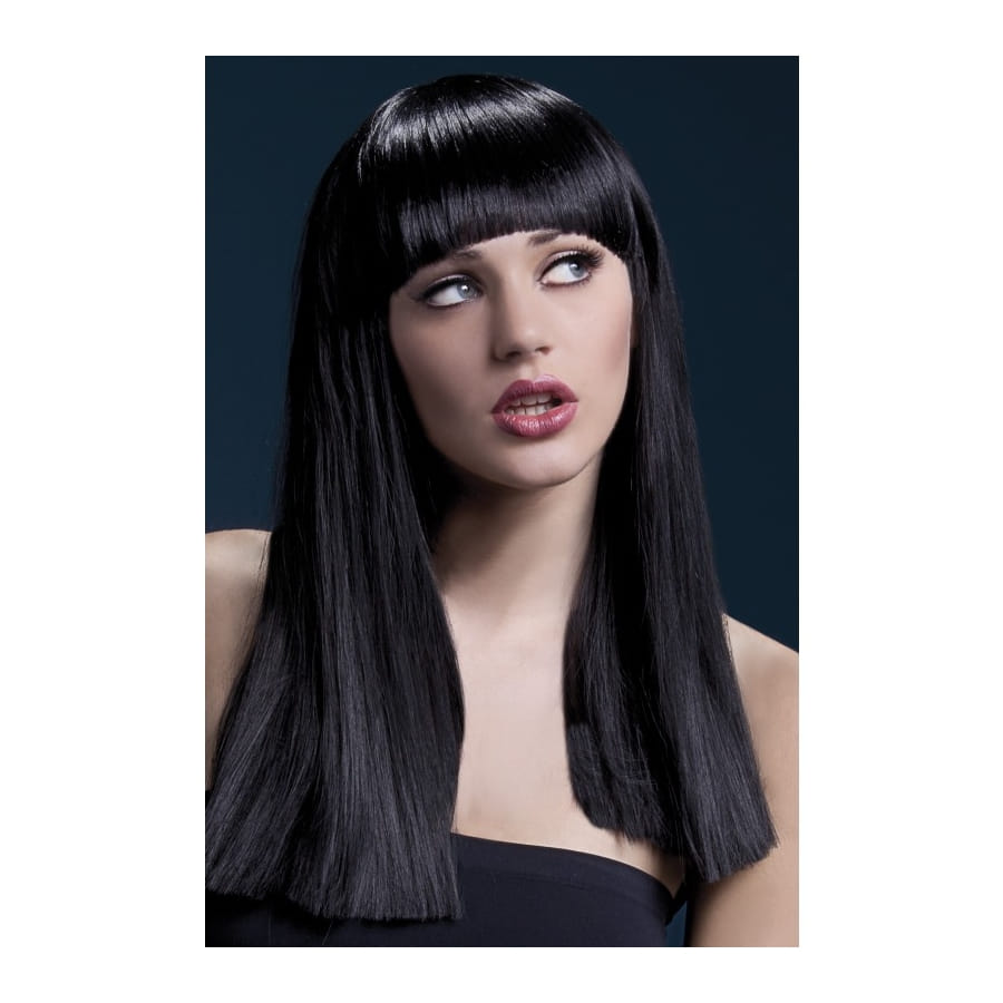 Très classique, la perruque que nous vous proposons est idéale pour toutes les occasions ! C'est une perruque à allure lisse, avec frange. De couleur noire, elle peut se porter avec toutes les tenues. Même pour Halloween, vous pouvez jouer les femmes gothiques en appuyant un petit peu plus le maquillage. Longueur de 48 cm.