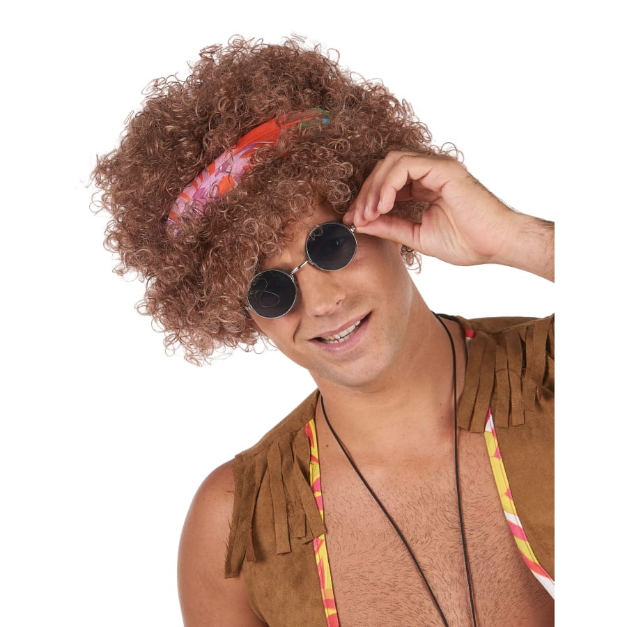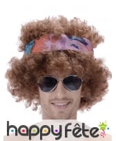 Le mouvement hippie est à l'honneur avec cette perruque afro châtains avec foulard fleuri qui associe à la perfection la tendance du mouvement des années 60 et le style afro.