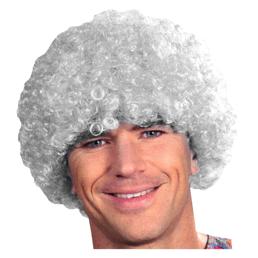 Perruque afro pop de luxe bouclée grise, pour homme ou femme. Cet accessoire est idéal pour une tenue basée sur un thème d'années 80, pour une déguisement de clown ou d'afro.