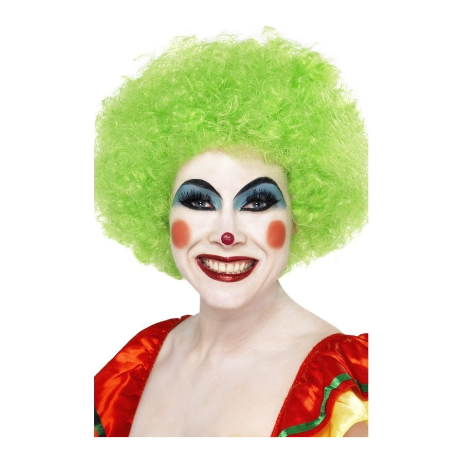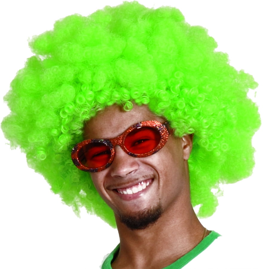 Perruque volumineuse afro frisée de couleur verte, pour homme ou femme. Cet accessoire est équipé d'un filet élastique pour vous permettre de mieux l'adapter à plusieurs déguisements. Cette perruque est idéale pour compléter un déguisement de clown ou de danseur funky!