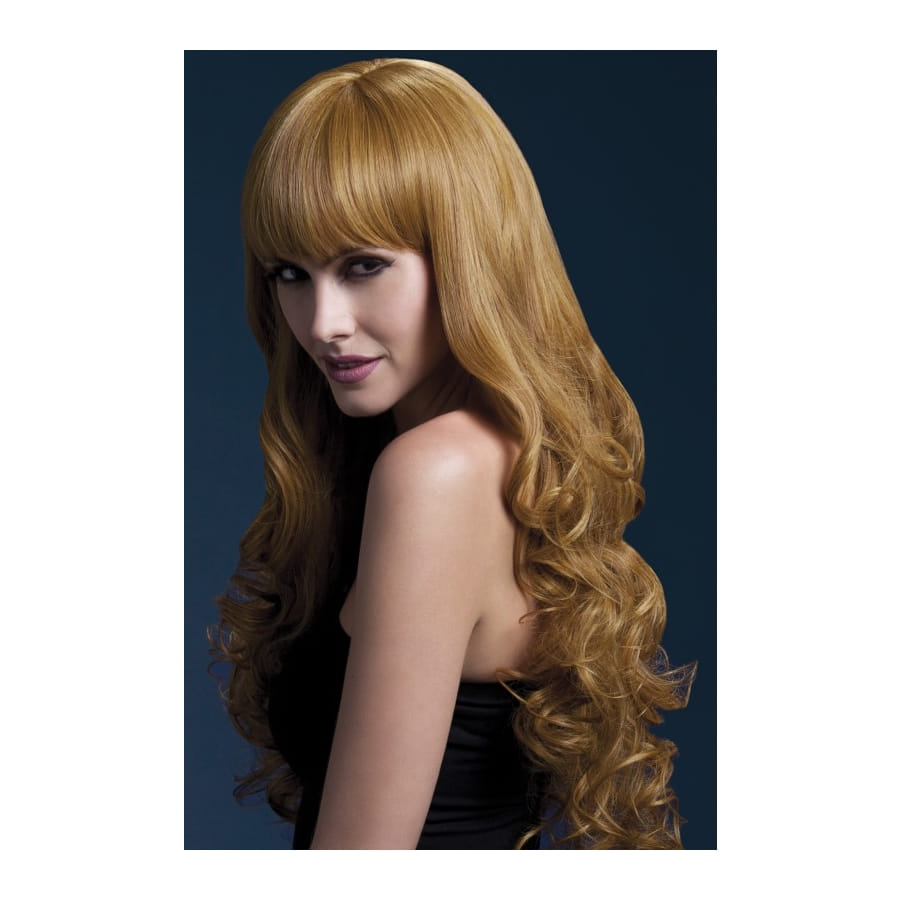 Une chevelure parfaite! Voilà ce qui vient à l'esprit dès qu'apparait cette perruque. Avec une belle couleur auburn, cette perruque d'une longueur de cheveux d'environs 66 cm possède une longue frange. Le milieu du cheveux, jusqu'à son extrémité est bouclé.