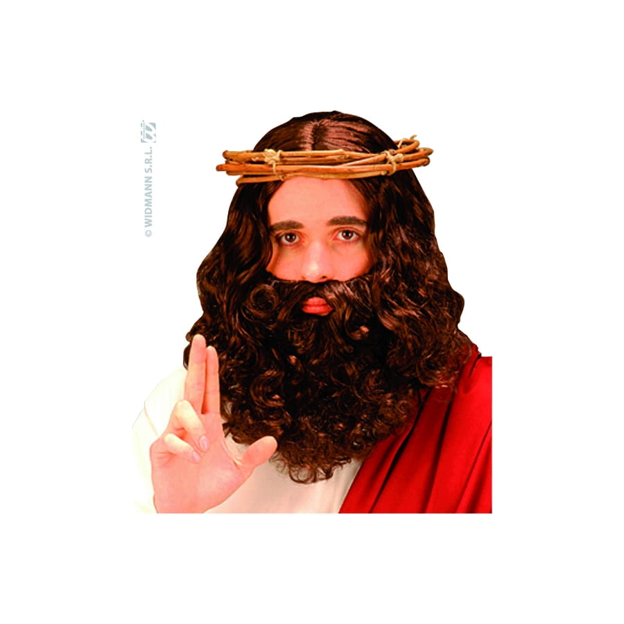 Perruque composée de longs cheveux ondulés, avec une barbe assortie, pour homme. Ce superbe ensemble vous permettra de compléter un déguisement de prophète religieux.