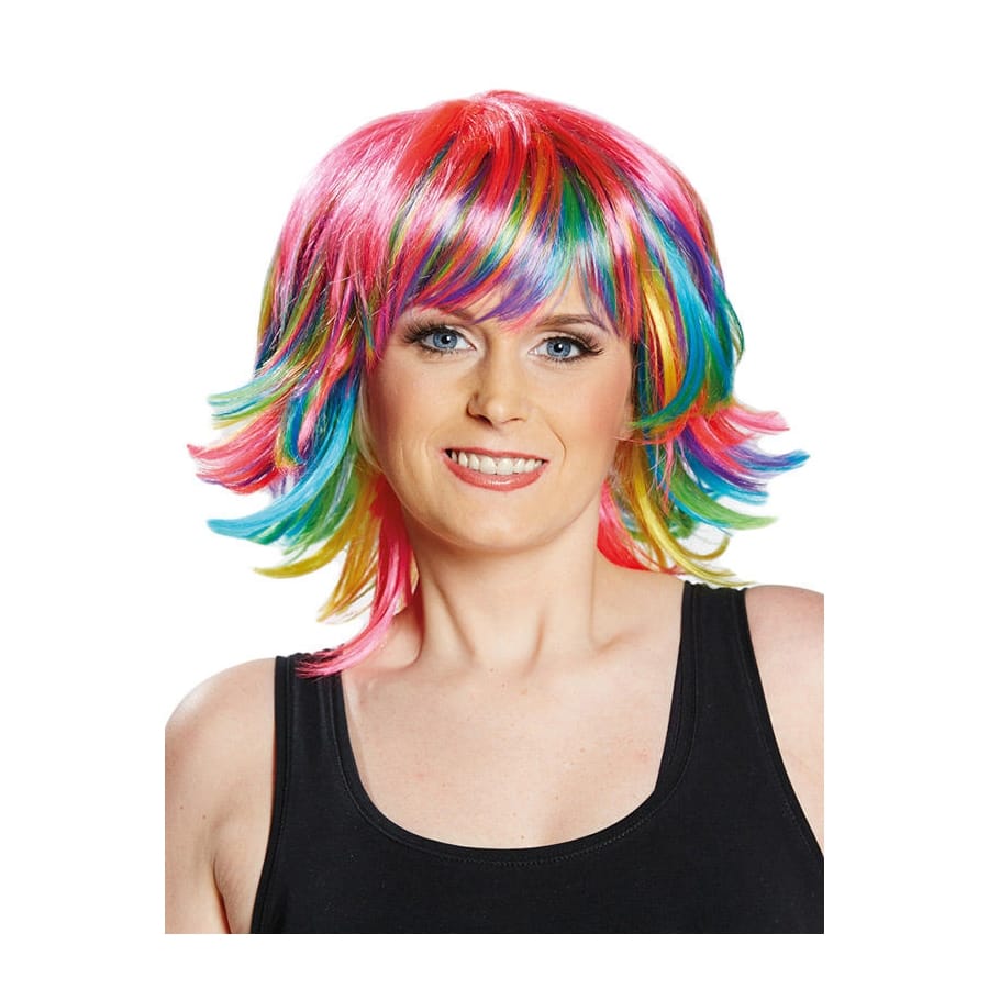 Ne perdez pas de temps pour le prochain carnaval et changez de tête en un instant grâce à notre perruque avec franges multicolores.