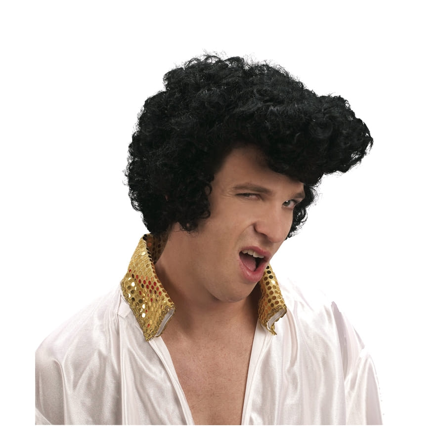 Reprenez le style des années 50-60 pour la prochaine fête de la musique. Cette perruque banane frisée noire va vous transformer en véritable rockstar. Elle est constituée par des cheveux de couleur noire, légèrement frisés avec beaucoup de volume sur le devant. Vous disposerez ainsi d'une coiffure très originale pour vous démarquer à une soirée déguisée.
