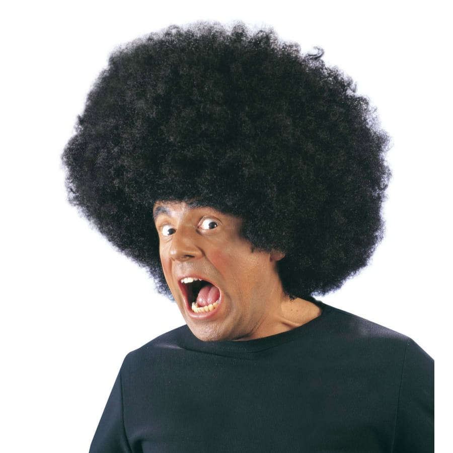 Volumineuse perruque de big afro frisée. Cet accessoire pour homme est de couleur noir. Grâce à cette perruque, votre déguisement d'afro ou de danseur disco sera impeccable.