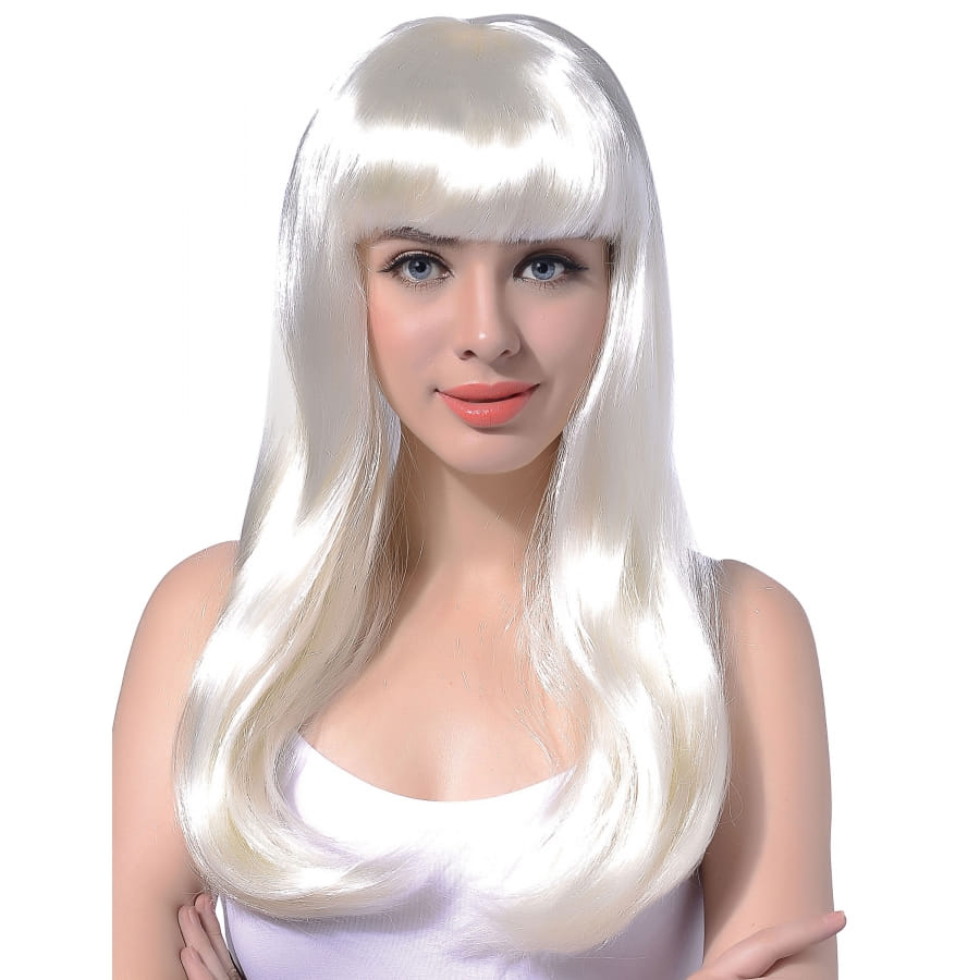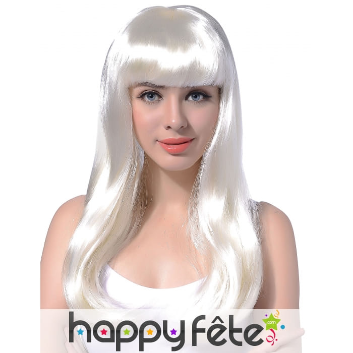 Si vous recherchez un accessoire riche en originalité pour compléter votre costume, nous avons l'article qu'il vous faut. Il s'agit de la perruque blanche avec frange droite pour adulte. Cet article, disponible sur notre site fera toute la différence une fois associé à votre déguisement. D'une longueur arrivant au niveau de la poitrine, sa couleur blanche renforce son style. Son beau reflet rend cette chevelure encore plus réaliste.