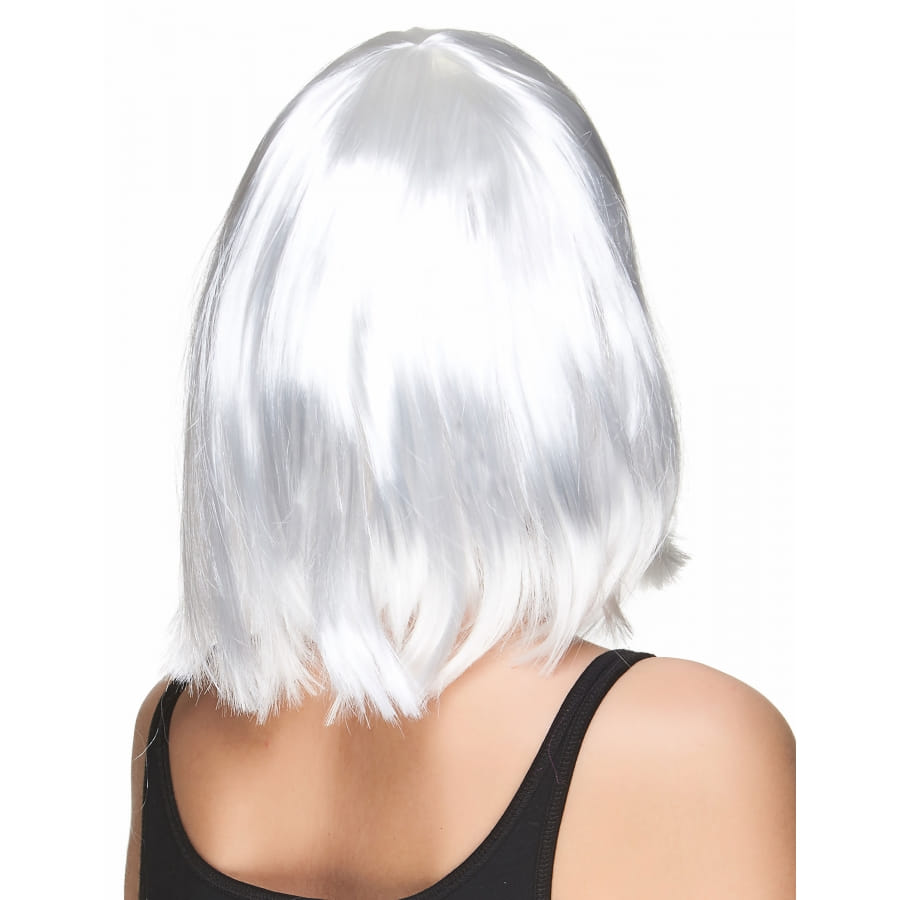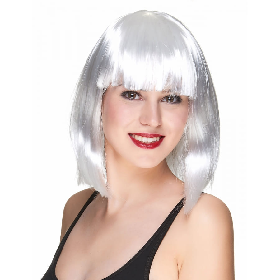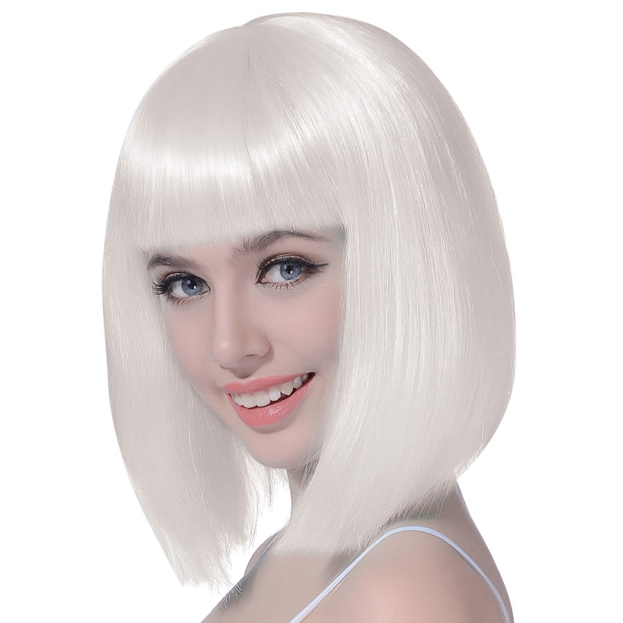 Choisissez la perruque blanche carré mi-long lisse frange droite pour une sortie en cabaret ou pour une soirée disco.