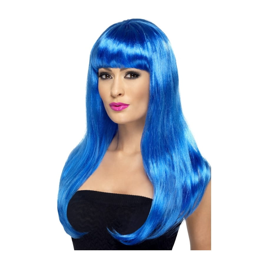 Que vous soyez danseuse dans un cabaret disco, simple spectatrice ou bien que vous ayez un déguisement disco pour le prochain carnaval, cette perruque sera parfaite. C'est une perruque avec une très longue chevelure bleue, toute lisse et avec une frange droite. Les pointes ne sont pas droites, elles se terminent en pointe.
