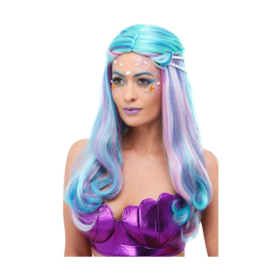 Du glamour, du chic et de la coloration, c'est ce que vous offre cette Perruque bleue de sirène avec perles.